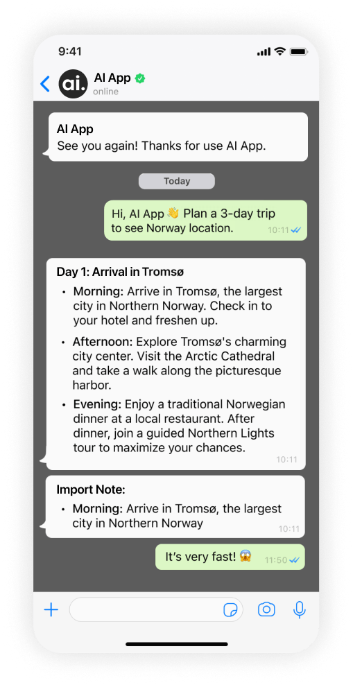 AI App can remember previous topics and continue the conversation seamlessly.